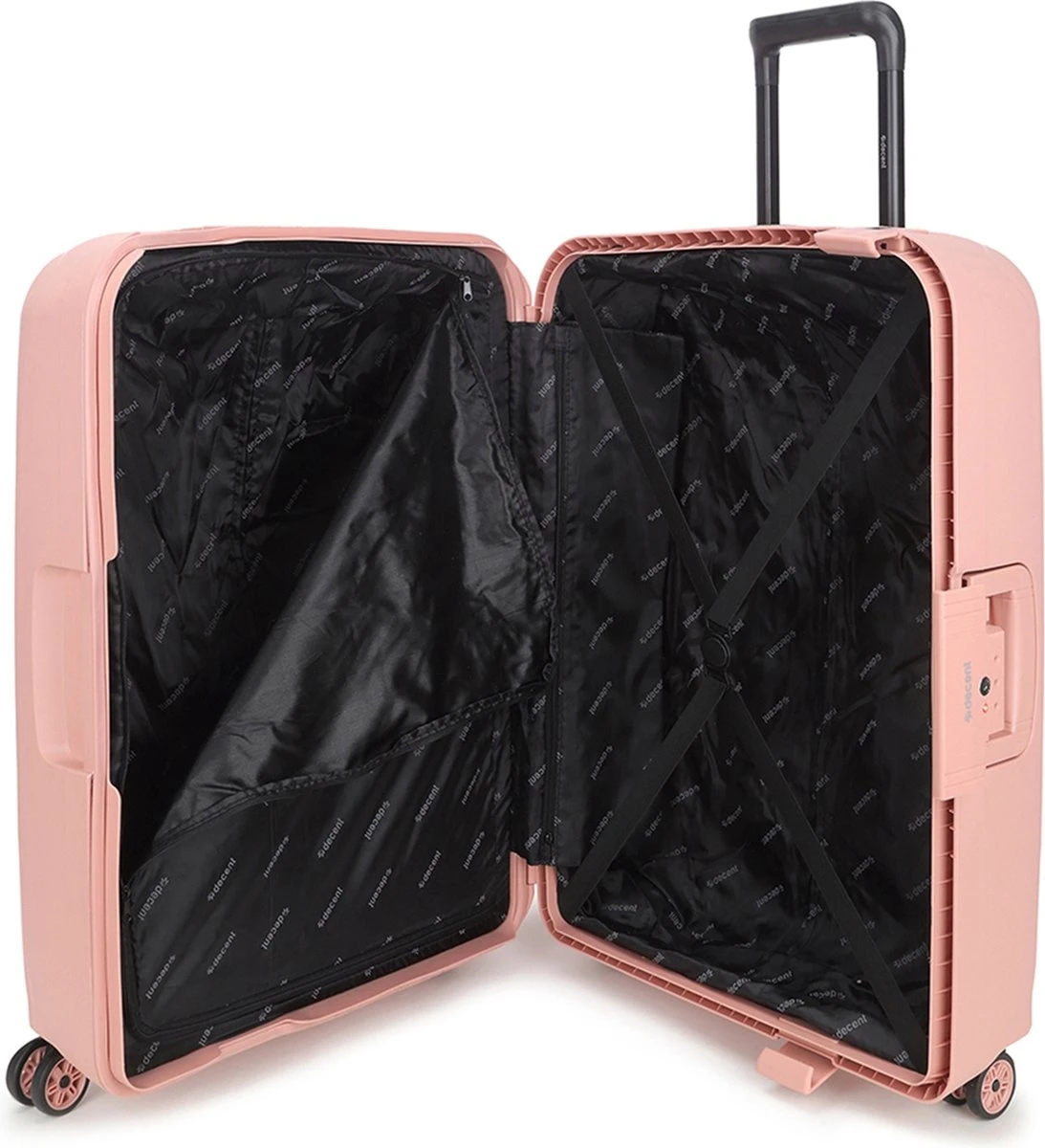 Wanneer je een grotere reis gaat maken is de Axiss-Fix koffer van Decent ideaal om mee te nemen. De koffer is roze van kleur en licht van gewicht. Daarnaast is hij voorzien van een verstelbare trekstang, twee handvatten en vier soepele roterende wielen. Door deze eigenschappen is de koffer erg comfortabel in gebruik. Het strakke design en de kleur roze maken van deze koffer een stijlvol exemplaar. De koffer is veilig af te sluiten met de driepuntssluiting en het TSA-combinatieslot aan de zijkant.