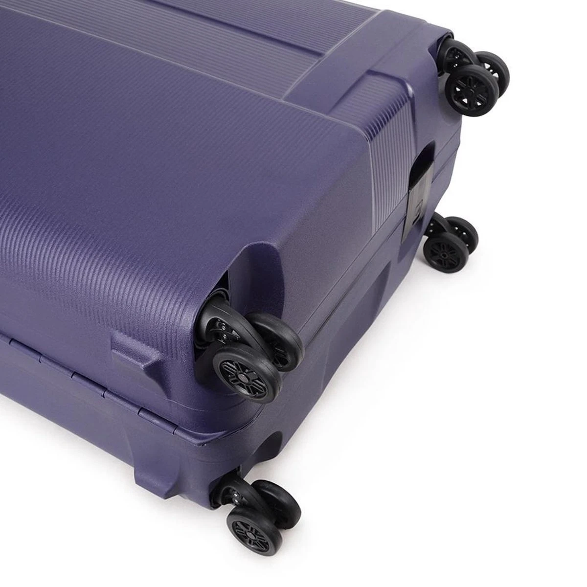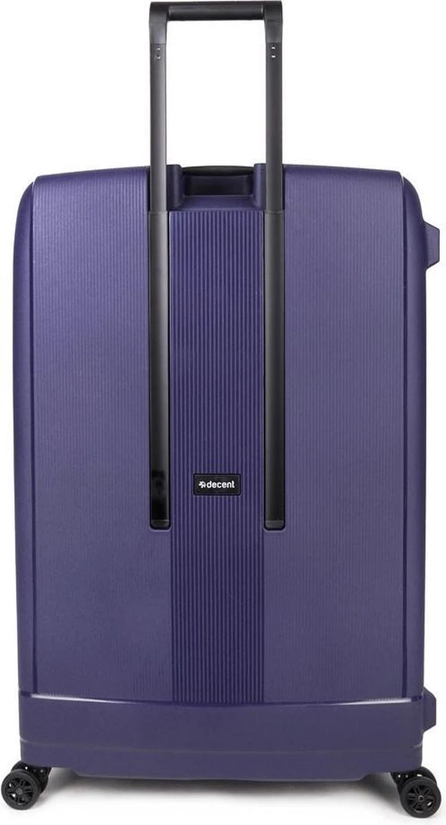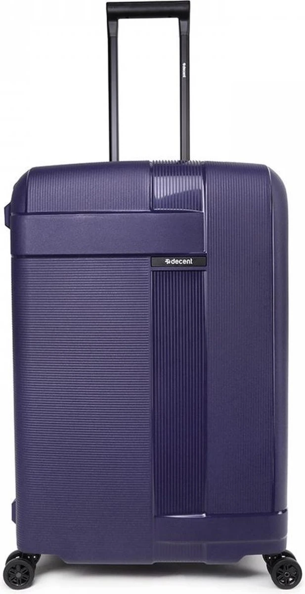 Middelgrote polypropyleen hardschalen koffer uit de Transit serie van het merk Decent. De koffer is rondom voorzien van drie kliksloten. Op de boven-en onderkant zitten sloten die u vastklikt en op de zijkant zit het hoofdslot dat een TSA cijferslot is. De koffer heeft een zwarte voering, een tussenschot met rits, een extra ritsvak en is voorzien van spanbanden. Handvat op bovenkant en zijkant en voorzien van een comfortabel dubbel 4-wiel systeem.