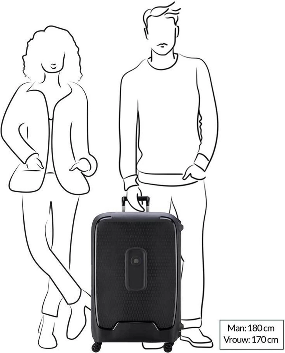 De serie Delsey Moncey is een serie gemaakt van het zeer schokbestendige materiaal polypropyleen. De koffer heeft een 3-puntssluiting met TSA cijferslot. Ook van binnen is deze koffer mooi uitgevoerd met elastische inpakbanden en een vak die met een rits is af te sluiten. Dankzij de vier soepele, stille en dubbele wielen, de twee handvatten en de telescopische trekstang kan de koffer comfortabel worden vervoerd. Met een inhoud van 97 liter is deze koffer ideaal voor 2 á 3 weken vakantie.