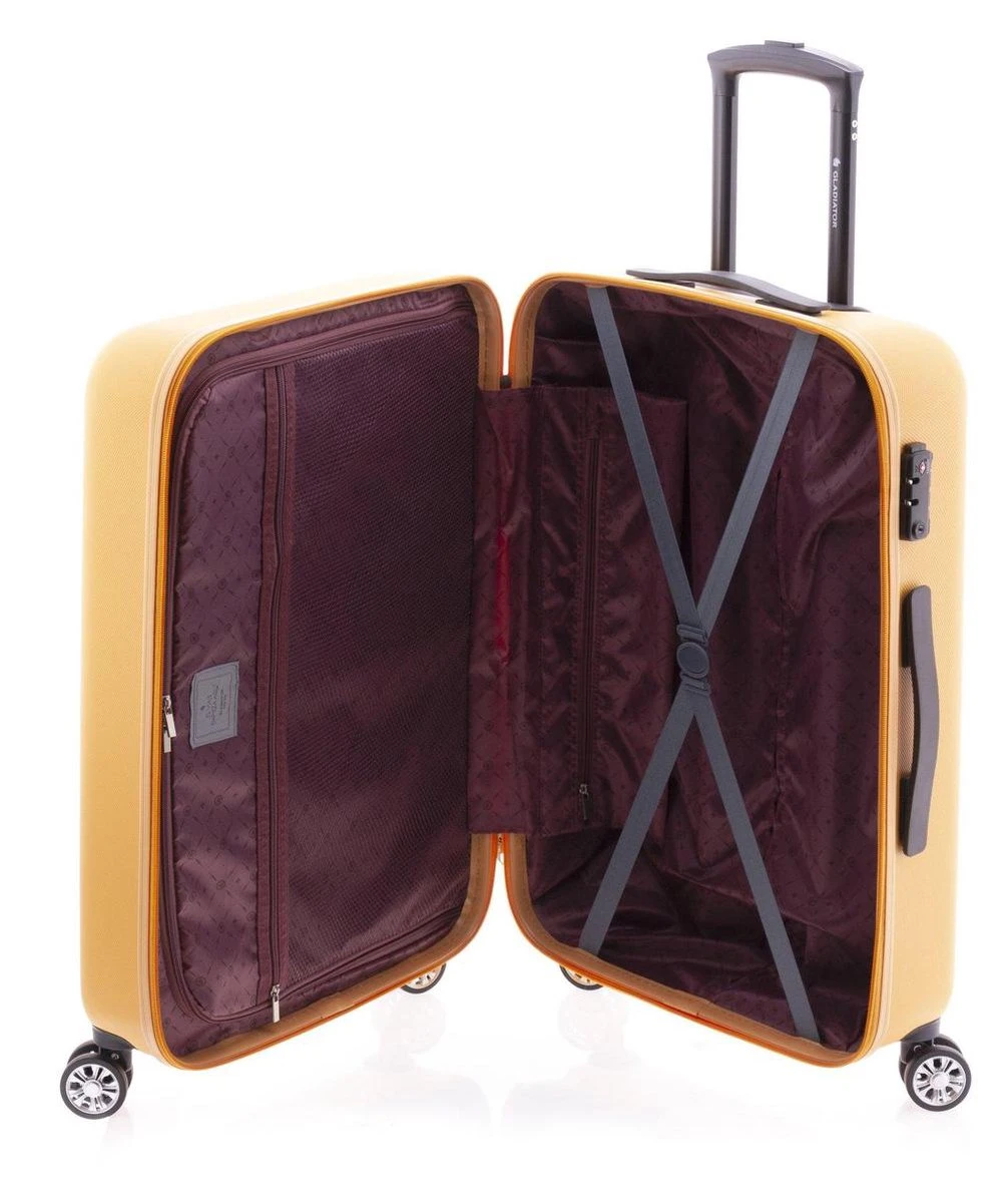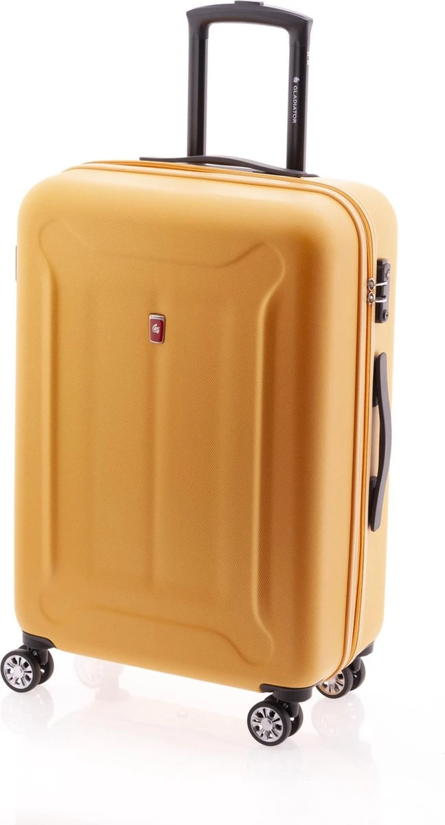 Middelgrote hardschalen, ABS koffer uit de Beetle serie van Gladiator in kleur blauw. Koffer is voorzien van een ritssluiting rondom die op slot te zetten is middels een vast TSA cijferslot op de zijkant van de koffer. Binnenin gevoerd en voorzien van een tussenschot met ritssluiting en spanbanden. Handvat op boven- en zijkant en voorzien van comfortabel 4-wiel systeem.