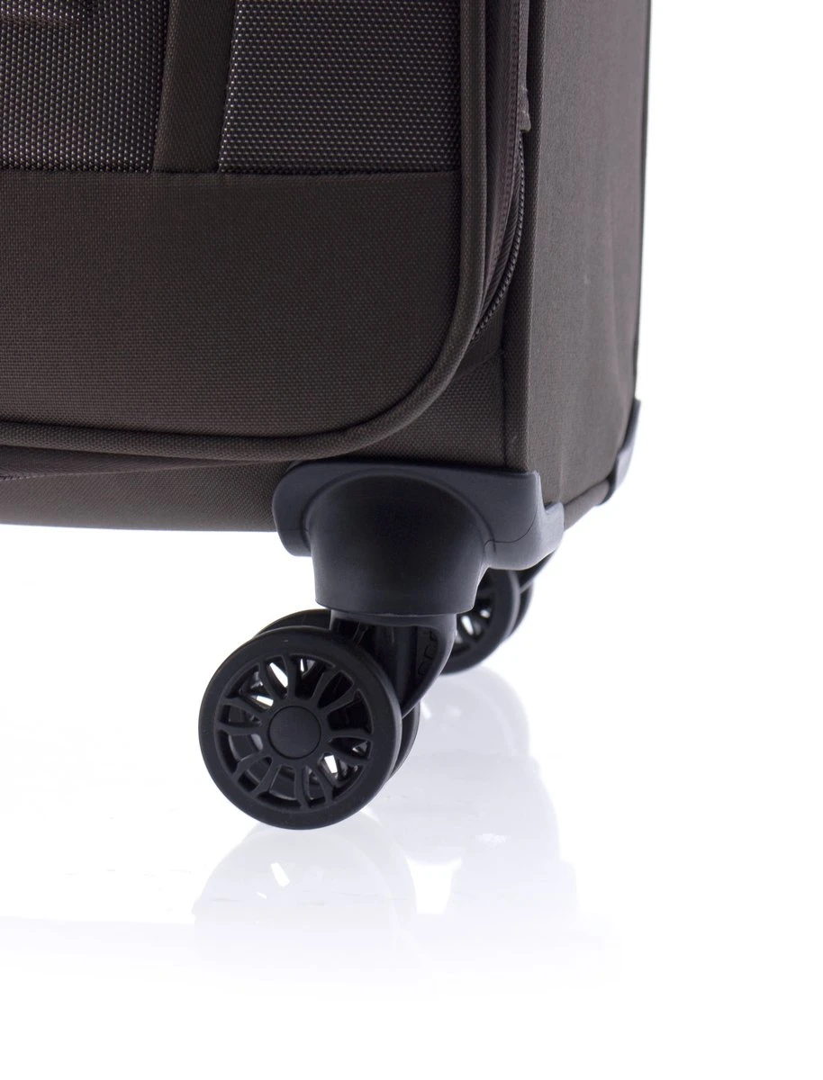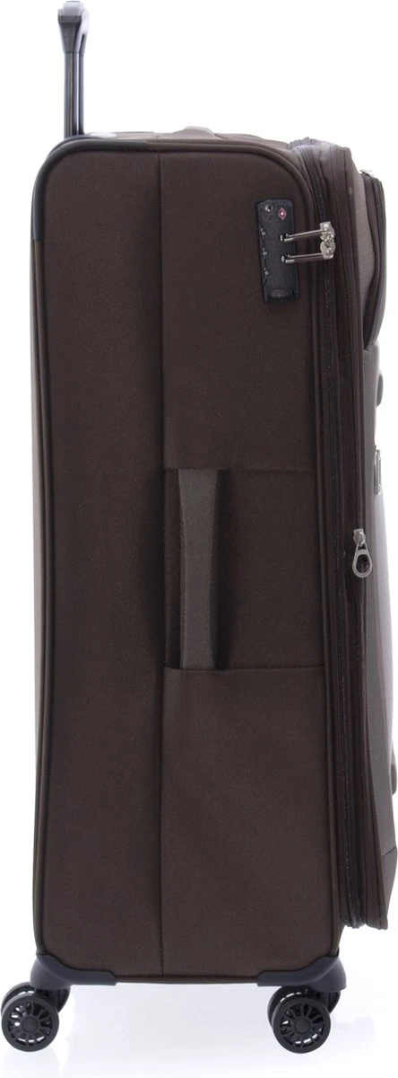 Grote stoffen koffer met dubbele wielen en TSA slot uit de Siroco serie van Gladiator. Koffer is voorzien van een ritssluiting rondom en een extra expandable rits waarmee de koffer qua volume vergroot kan worden van 100 naar 115 liter. Binnenin is de koffer gevoerd, voorzien van elastische spanbanden, een ritsvak en een ritsvak in de binnenkant van de klep. Op de voorzijde van de koffer zitten twee ritsvakken en op de boven- en zijkant zit een handvat. De uitschuifbare trekstang en de 4 zwenkwielen zorgen voor optimaal reiscomfort. De koffer is op slot te zetten middels een vast TSA cijferslot op de zijkant van de koffer.