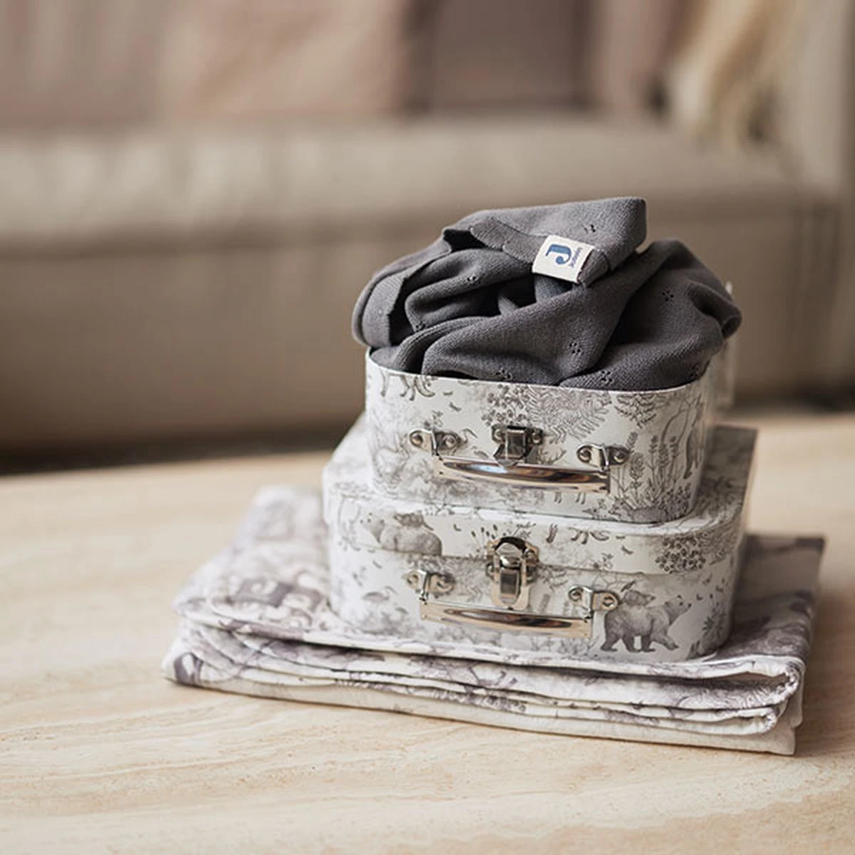 Het leuke koffertje heeft een mooi dessin van het Pimpelmees x Jollein bosdieren thema. Dit past dus perfect bij de andere items uit dit thema.