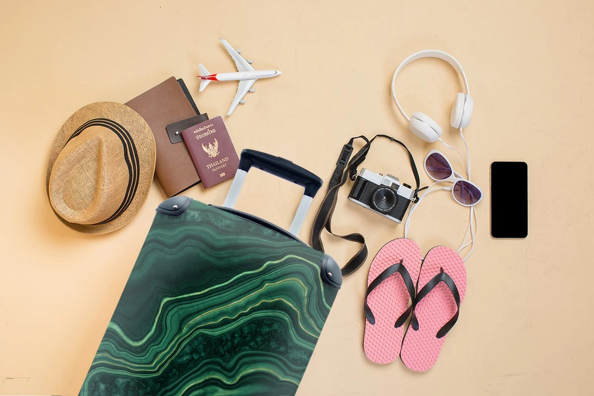 MuchoWow® Koffer – Marmer – Groen – Lijn – Past Binnen 55x40x20 Cm En 55x35x25 Cm – Handbagage – Trolley – Fotokoffer – Cabin Size – Print