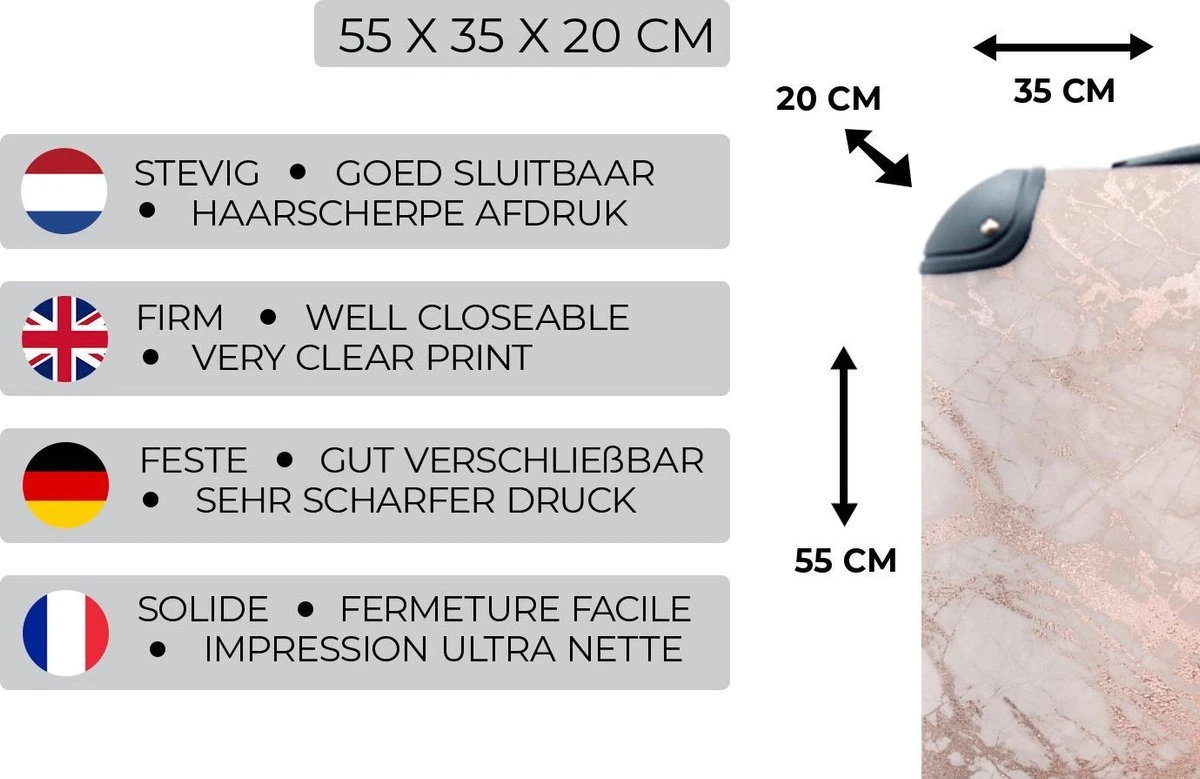 Ben je op zoek naar een hoogwaardige en trendy koffer welke ideaal is als handbagage tijdens jouw volgende reis? Dan is deze koffer van MuchoWow® een absolute must-have! De koffer is speciaal ontworpen met een transparante voorkant waardoor de print van je koffer nooit zal beschadigen. Daarnaast is het mogelijk om de print van de koffer te verwisselen. Ook beschikt het over een subliem afwerkingsniveau, wat resulteert in een modieuze uitstraling.