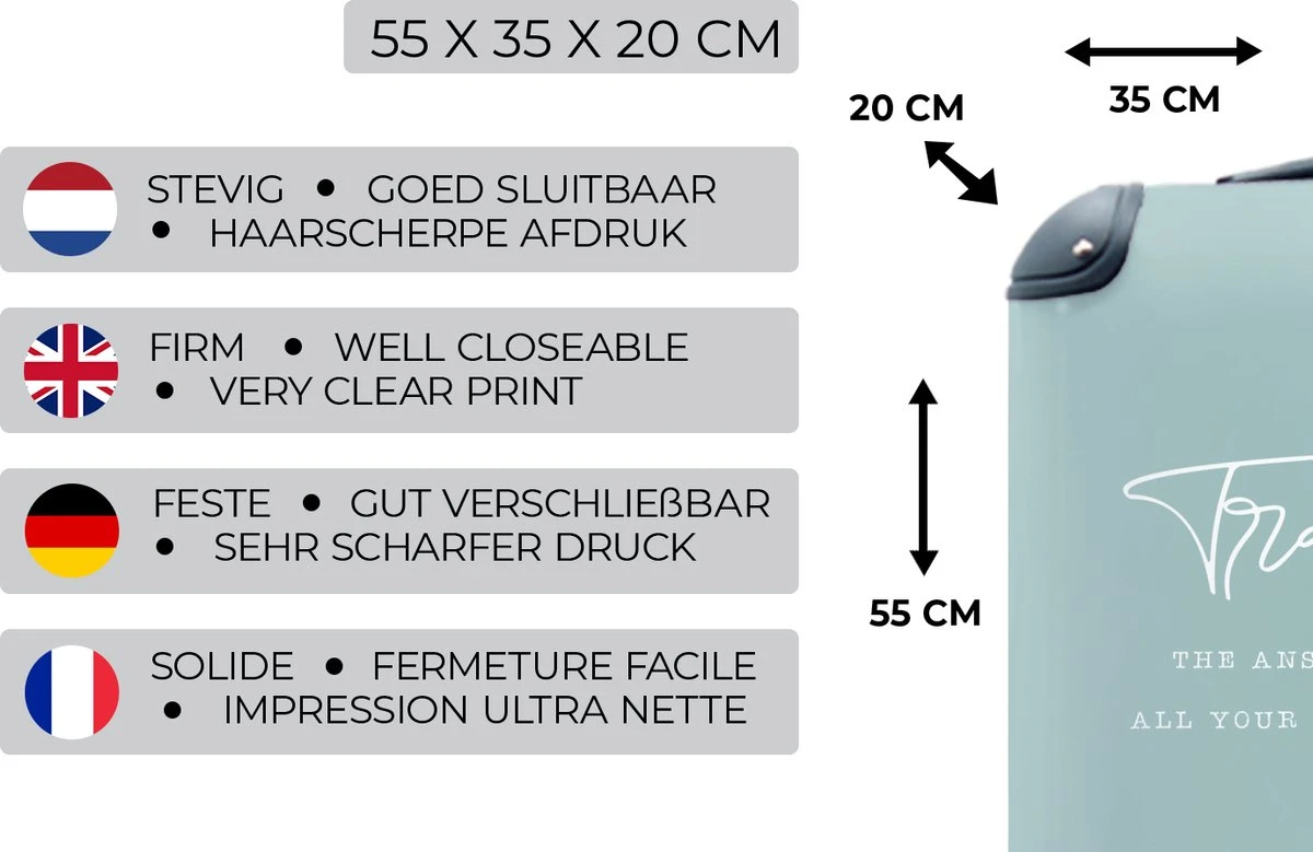MuchoWow® Koffer – Spreuken – Quotes – The Answer To All Your Problems – Travel – Reizen – Past Binnen 55x40x20 Cm En 55x35x25 Cm – Handbagage – Trolley – Fotokoffer – Cabin Size – Print