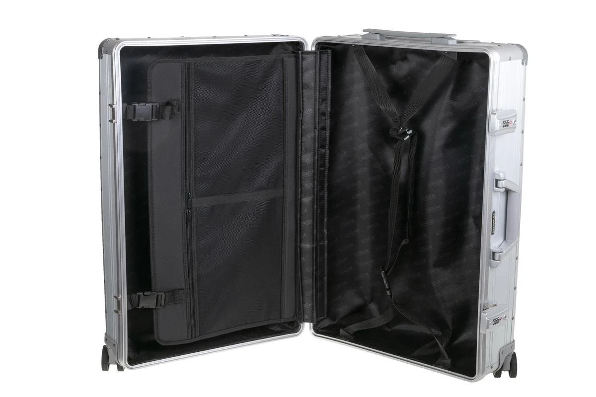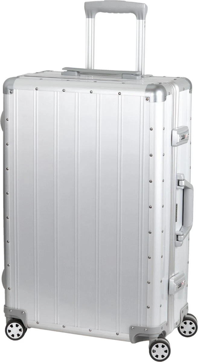 Reiskoffer trolley AURIGA Trolley met telescopisch handvat, TSA slot, vier dubbele wielen 360° draaibaar. Binnenin: bergruimte in beide helften, compartiment met gaas en met rits. zilver mat aluminium ca. 65 x 40 x 24 cm